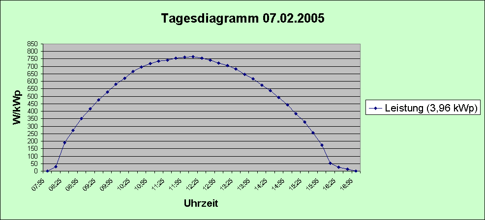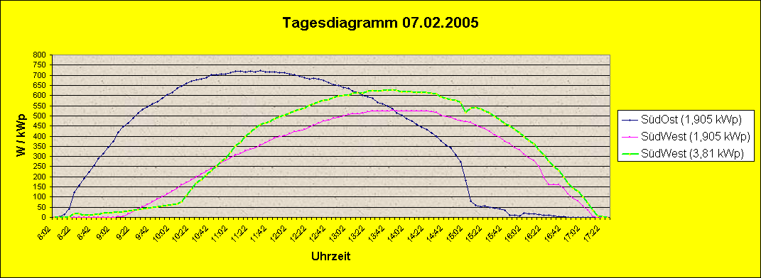 Tagesdiagramm vom 07.02.2005Wetter: Sonnig vom Sonnenaufgang bis zum SonnenuntergangTemperatur: Sonnenaufgang - 9°C Mittag 0°C Abends - 7°C